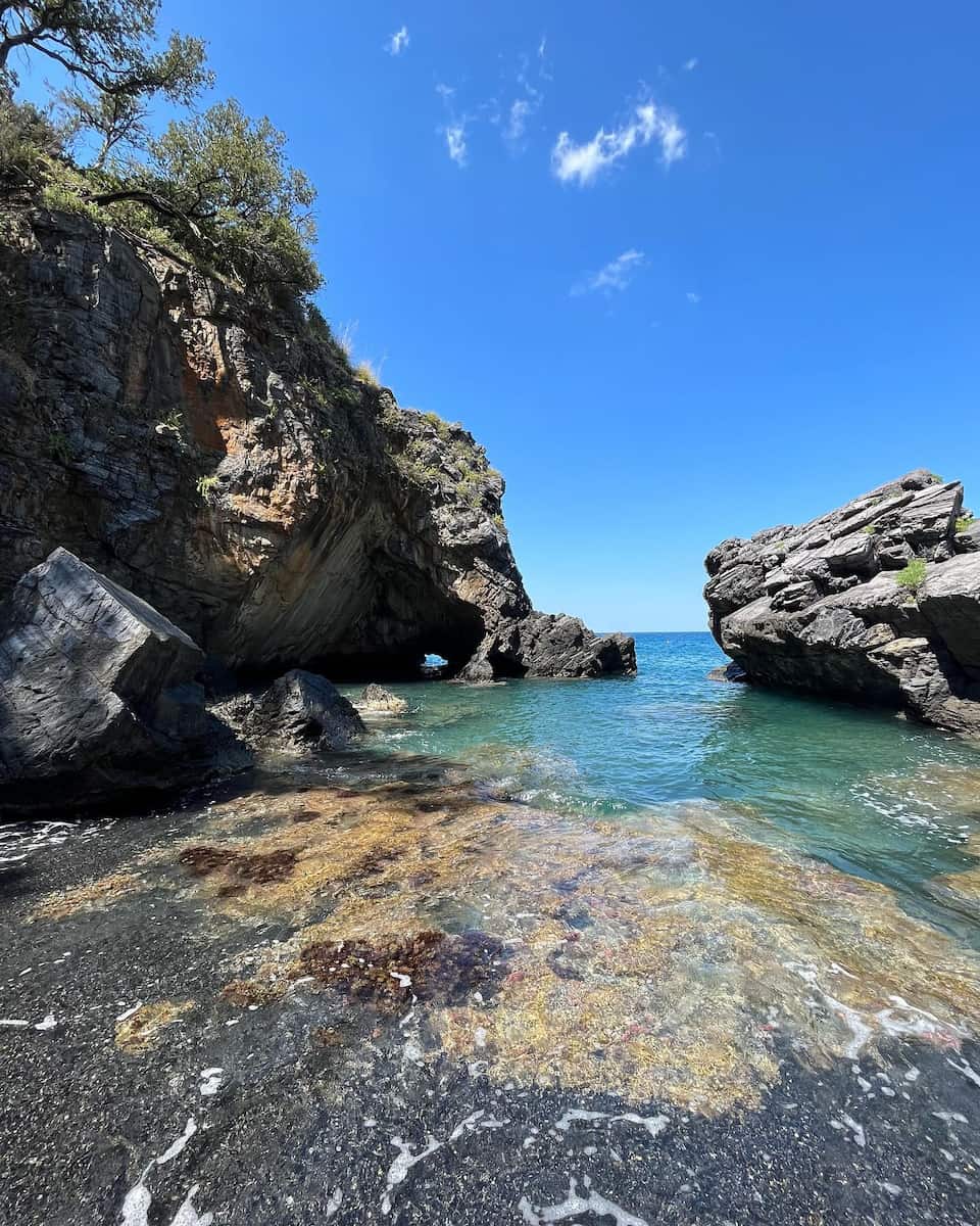 Park at the small lot near the tunnel shortcut and follow the cobbled steps through the valley bend. A local bar, La Taverna del Pescatore, serves the best granita in town beside a shaded beech grove. For a real local’s secret, continue along the coastal sentiero to Grotta delle Meraviglie, a sea cave shimmering with light where the cliff seems excavated by centuries of surf. Go early to avoid the midday sun, which turns the sand scorching and makes the final pitch toward the castello viewpoint feel steeper on the return.