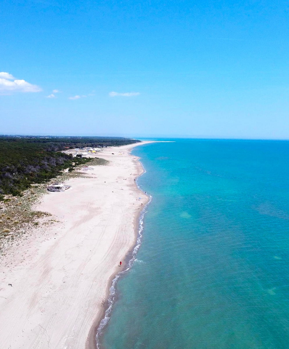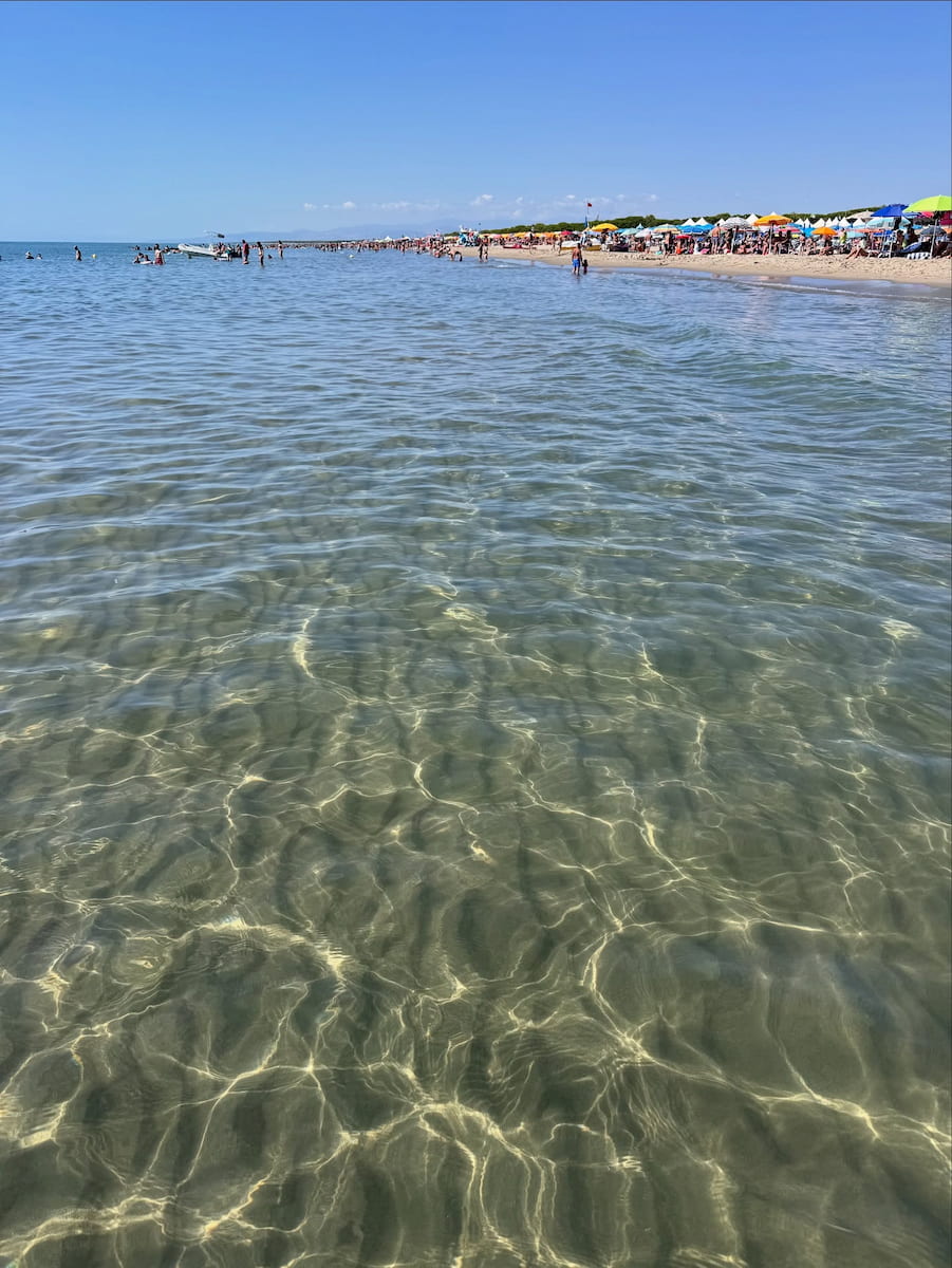 Pine and eucalyptus trees fringe this wide, gentle beach — a local spot on the Ionian Sea in Basilicata where I once watched a family of dolphins cruise the bay at sunset. The sand is soft, the water crystal, and the incline so slow you can wade out for ages beneath rows of umbrellas and sunbeds. July and August are lively but never frantic, and the nearby archaeological heritage gives day trips extra depth between swims.