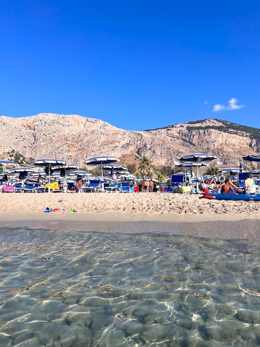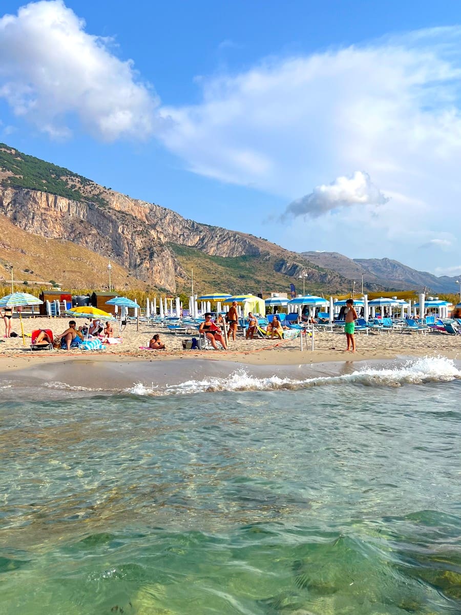 The soft sand warms underfoot as the waves gently lap the shore, creating a soothing rhythm along one of Carini’s beautiful beaches near Mondello Beach. I watched children build sandcastles near the water’s edge while parents relaxed on sunbeds under bright umbrellas, chatting about accommodation options with free cancellation for the summer months. This wide sandy bay with calm waters is perfect for families and swimmers, offering a long stretch of golden sand and shallow, clear water ideal for kids who love spending time at stunning beaches.