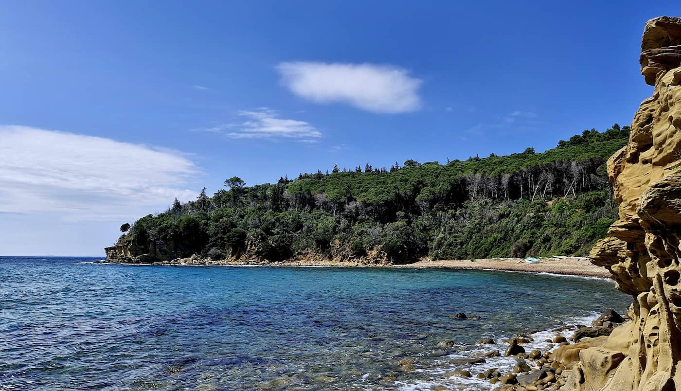 Fine white sand meets fragrant woods at Carbonifera, creating a natural canopy behind the beach—somewhat rare on the Tuscan coast. I spent an afternoon here, mesmerized by the light filtering through the trees and the sound of waves mixing with wind in the leaves. This 700-meter stretch is great for snorkeling and swimming, with shallow, clear water ideal for a dip in summer.