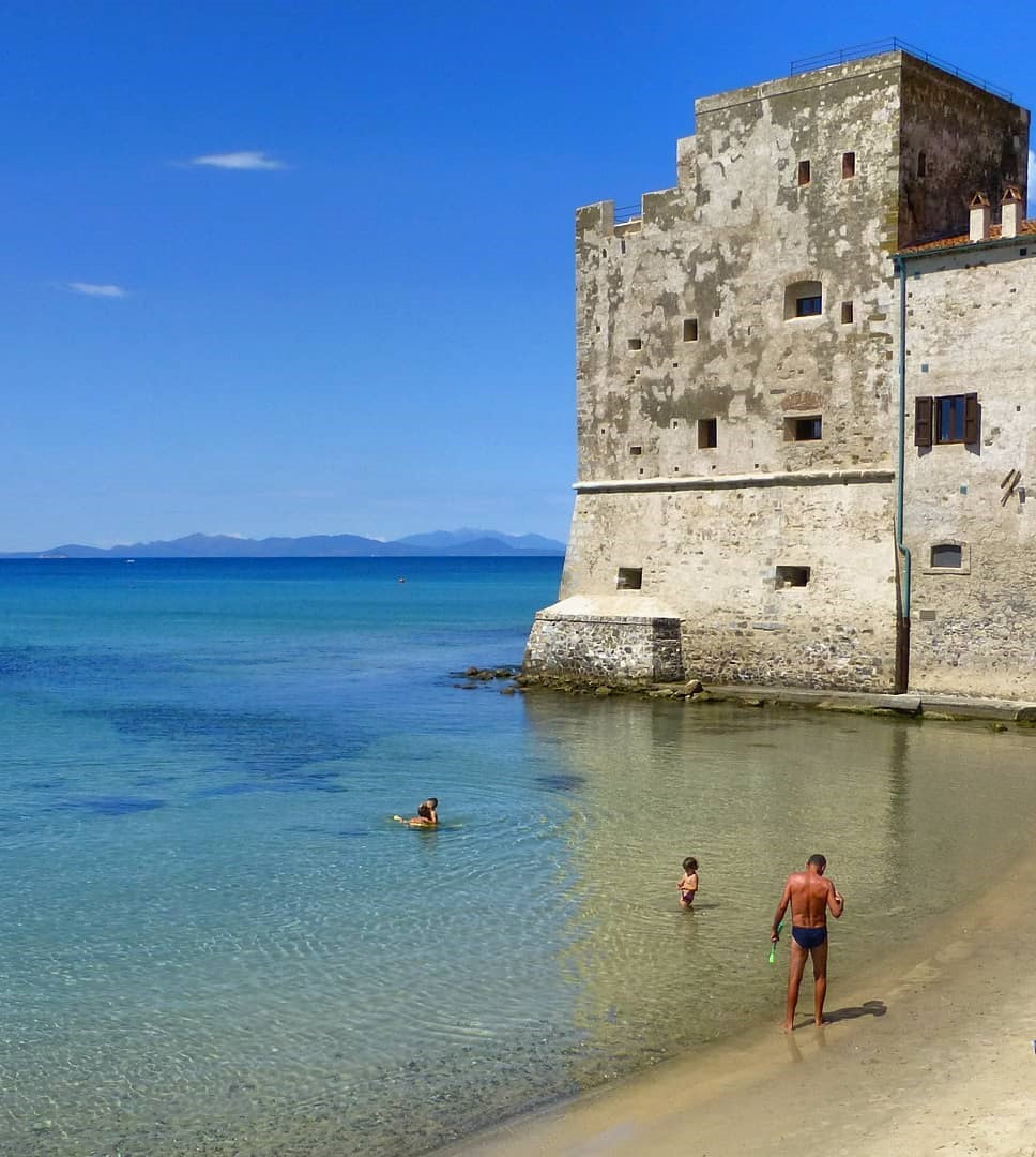 Park at Parcheggio by the historic coastal watchtower and follow the boardwalk to the tower. Explore the sandhills of Parco Naturale della Sterpaia, then refuel at the popular seaside bar beside the tower, a favorite for aperitivo with beautiful seaside views. The secret spot? A small rocky outcrop to the south, where locals escape for sunset swims and dramatic views behind the beach. Arrive midweek to discover the best beaches in this quiet pocket of the Maremma.