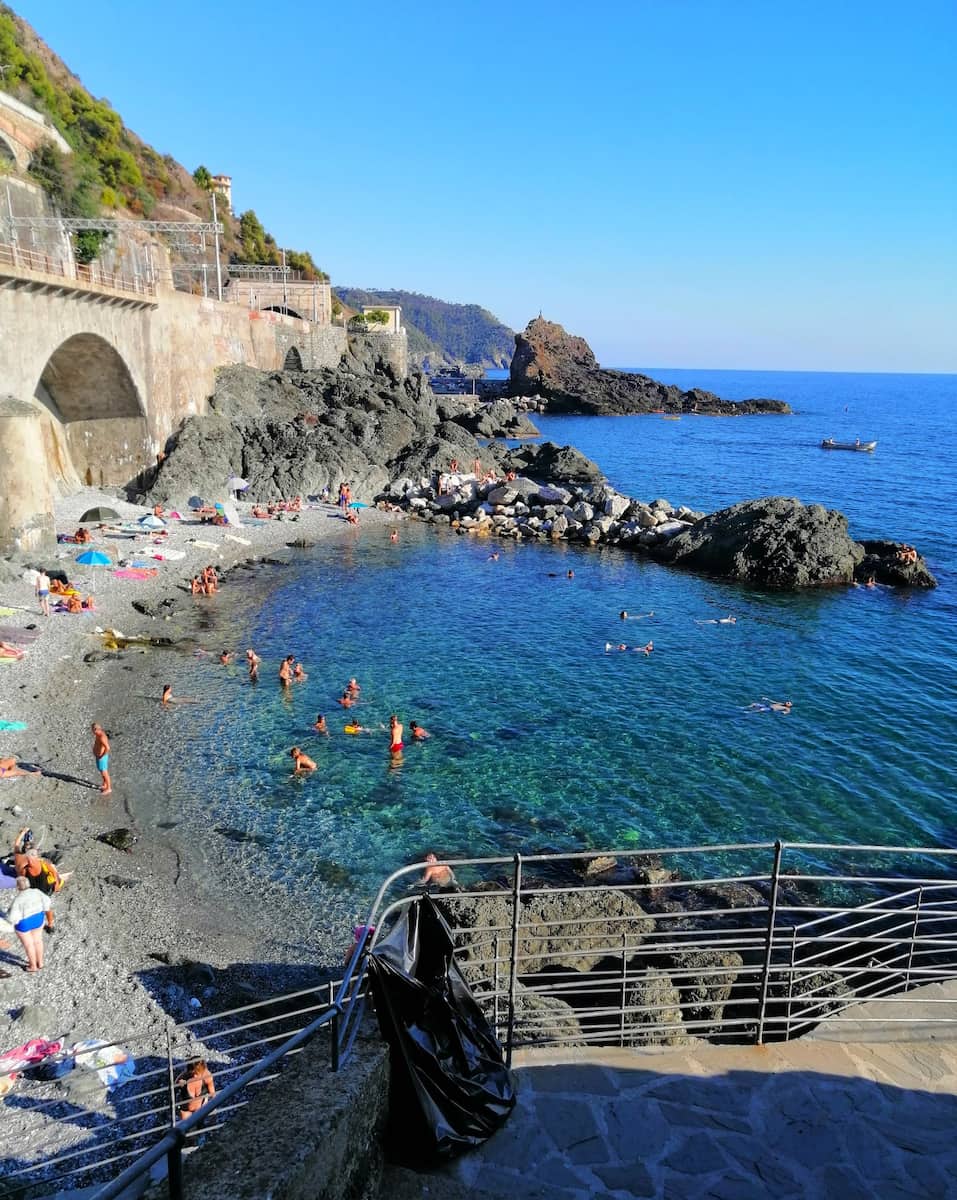 Right below the railway, this tiny pebble beach is all about convenience and green views, a modest sandy inlet feel despite the stones. The water is deep and clear, with fish darting between the rocks—the railway wall provides shade for late risers along a stretch once shaped by Genoese domination. Best for a refreshing dip after a train journey, or a quick swim before exploring the five villages that crown the cliffs with quiet lanes and local dishes to try at day’s end.