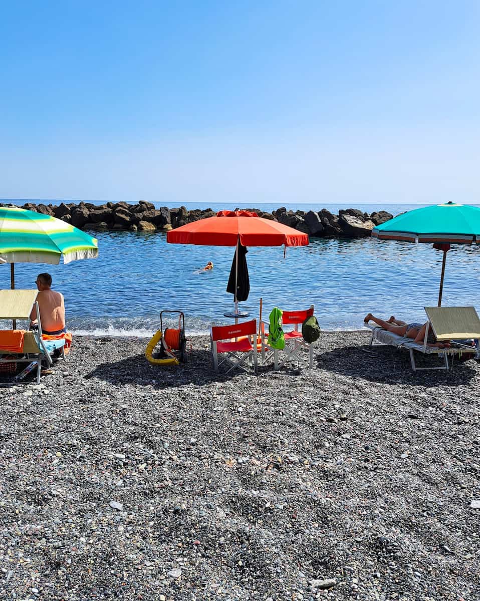 Walk here from Deiva Marina or drive and park nearby—there’s a small lot for early birds with views that stretch toward the green hinterland. The promenade by the coast road is lined with pines, ideal for a shady stroll, and the tiny bar at the train underpass is a local secret for affordable panini and cold drinks between dips in crystal-clear water. While sunbathing, I watched small fishing boats coming and going—a reminder that this is still a working coastal village, not just a resort along the Italian Riviera. Arrive before 10AM for the best spot; afternoons get busy even with plenty of space for water sports and diving farther off the shore.