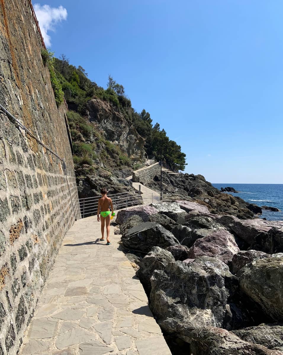 Start your day at the Via del Mare promenade, where locals jog and couples stroll hand-in-hand at sunset on a gentle trek linking the hamlets. The beach is fully equipped—deckchairs, umbrellas, showers—but skip lunch at the bar; a tiny snack place at the start of the walk is all you get, with side alleys like Ravecca and Castagnola adding charm. Families love the calm waters protected by breakwaters, while locals swear by the staircase up to the historic hamlets of Anzo and Setta for a post-beach espresso with a view in the province of la spezia. Take the 2PM train back to avoid crowds; the nearest station is just a short walk away.