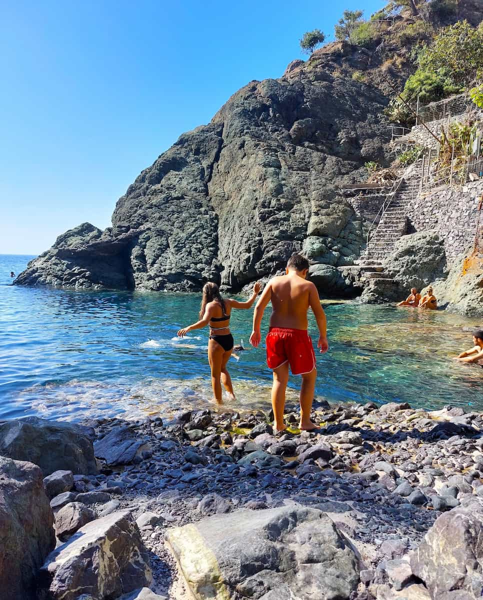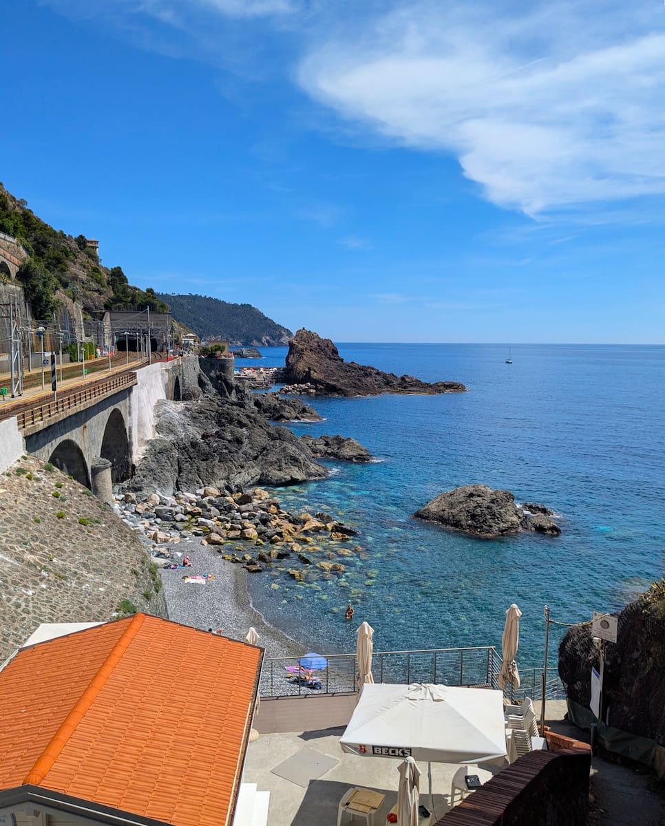 The train station is just steps away—perfect for those traveling light or on a schedule between the five villages. Locals stop here for a quick swim before heading home, and the tiny bar at the underpass is a handy spot for a cold drink and a taste of local dishes. Don’t expect sandy shores, but the setting is unique and the water is clean, with a glimpse of a sheltered sandy inlet further along the tracks.