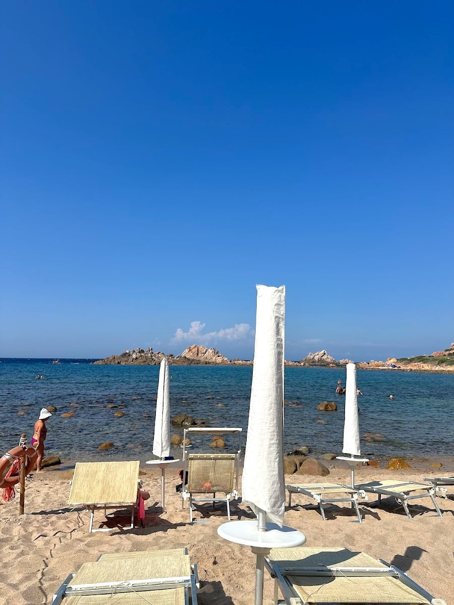 Li Cossi feels like a secret—a white and pink sand beach tucked in a canyon, reached by a scenic path that is easily reached on foot. The water is shallow, perfect for families, and the beach is equipped in high season with a few shaded areas and discreet loungers away from the shoreline. I followed the trail through Mediterranean scrub, emerging to a quiet paradise that feels like a sheltered baia beneath a distant torre aragonese.