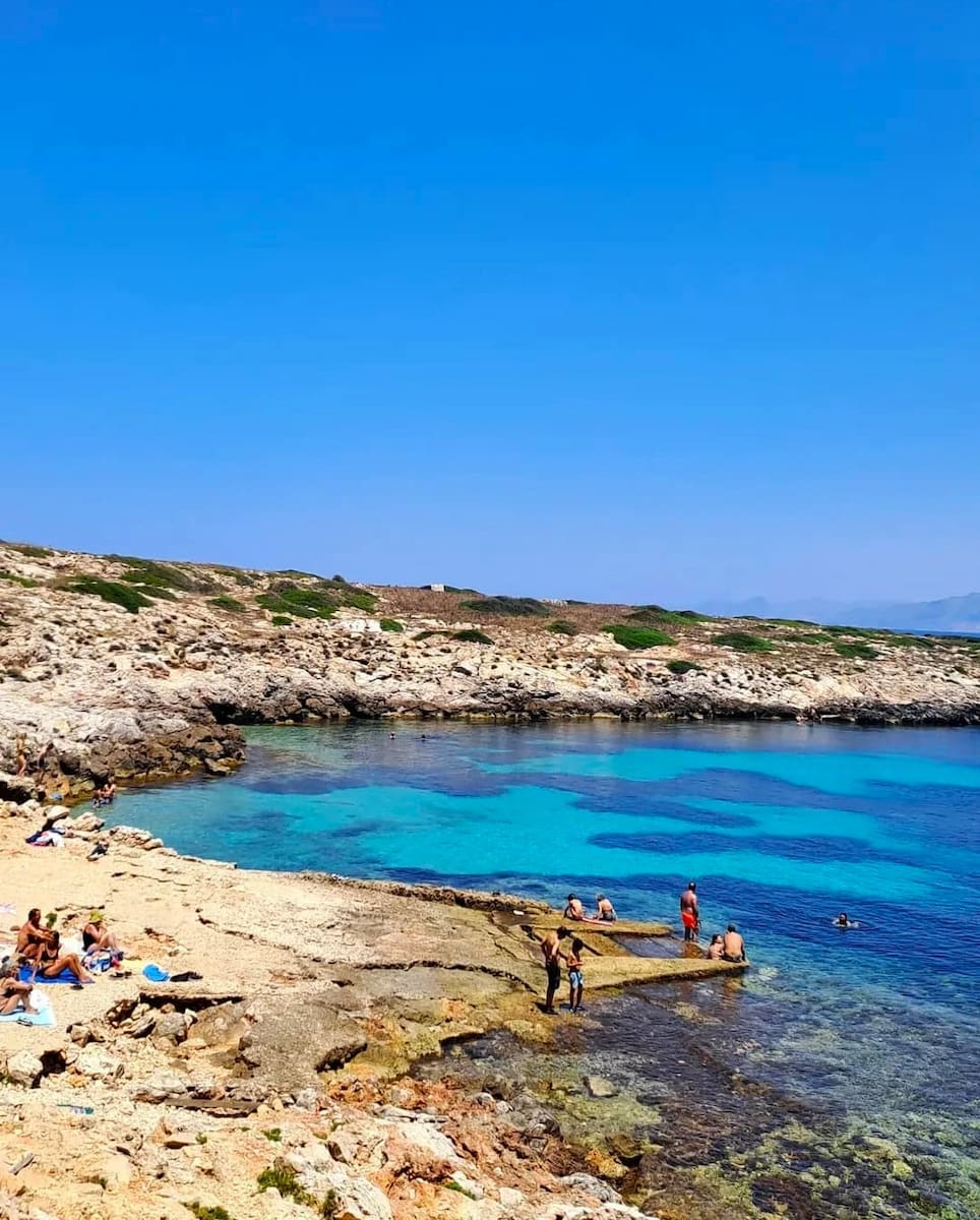 Follow the coastal path from Cala Dogana past fragrant wild herbs and cacti, stopping to admire the view toward Favignana and the tiny islet offshore while ferries from Liberty Lines glide past. Locals often bring picnics to the flat rocks near the water’s edge — a quiet spot for midday shade dating back to old fishing days and still a beloved habit. There’s no lifeguard or facilities, so pack what you need. Early afternoon is the best time for solitude; the walk from town takes about 10 minutes.