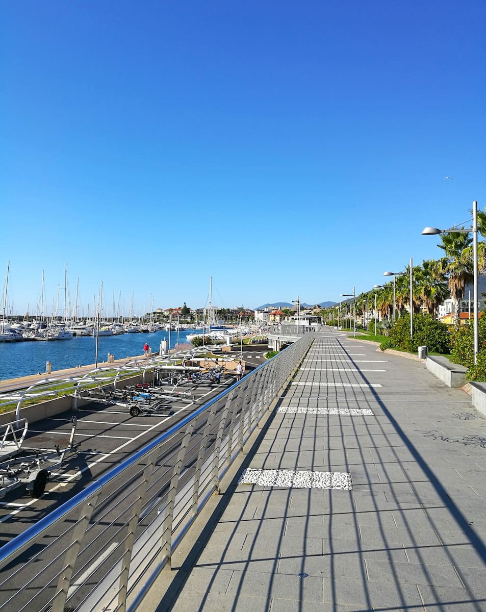 Walk the Garibaldi Promenade for sunset views on the Italian Riviera, visit the nearby Marina di Loano — a modern marina with sleek yachts and restaurants and shops — for yacht-spotting, and sample local wine at Enoteca Molo 24. Locals swear by the hidden stretch past the marina for a peaceful swim where the seabed is clear and conditions vary depending on the season, even when the popular beaches are busy. Parking is available at the port, and the beach is a 10-minute walk from Loano’s center, making it a destination for families as well as couples.
