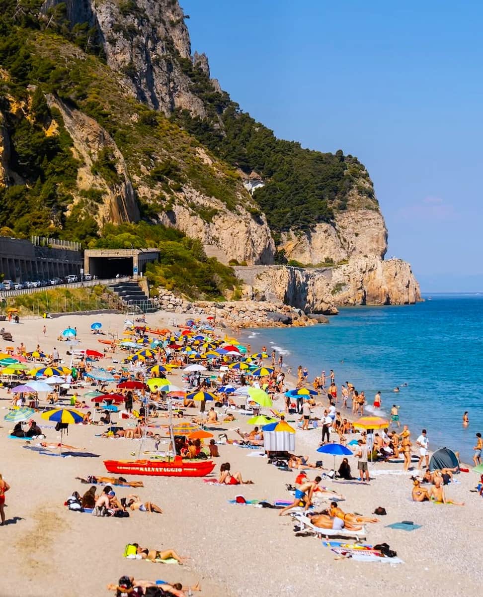 Varigotti Beach is renowned for its colorful houses and relaxed vibe. The sand is soft, the water is clear, and the village behind the beach is charming. I remember a quiet morning swim followed by coffee at Bar del Sole, watching fishing boats return to the harbor. The beach is about 1 km long, best from May to October.