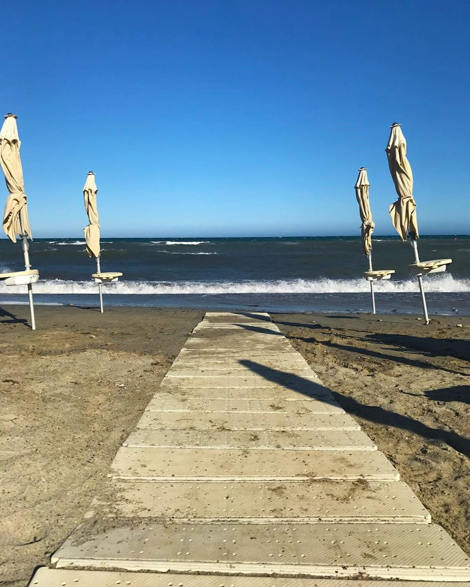 If you’re keen on staying active, Bagni Oasibeach is the spot for windsurfing, paddleboarding, and beach volleyball. The energy here is contagious — I joined a pickup game and met travelers from across Europe. The sand is firm and golden, the beach stretches about 200 meters, and the best months for water sports are May through September.