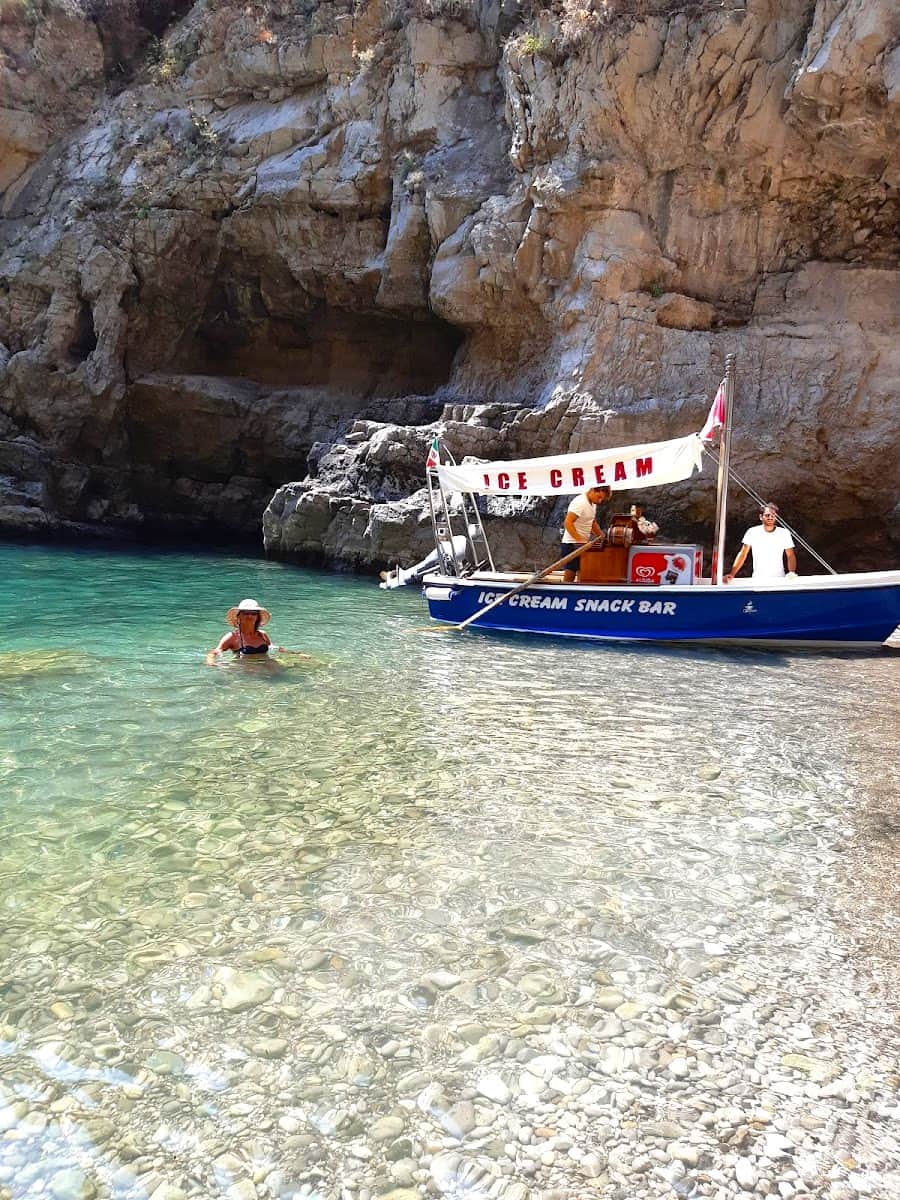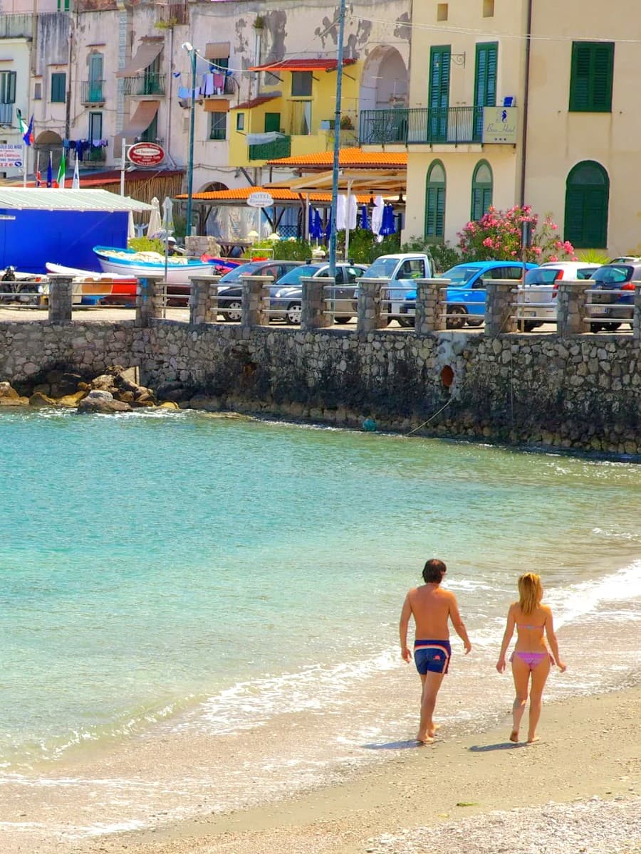 Marina di Puolo Beach and Marina del Cantone Beach—both have shallow, safe swimming areas, some sand, and nearby cafes.