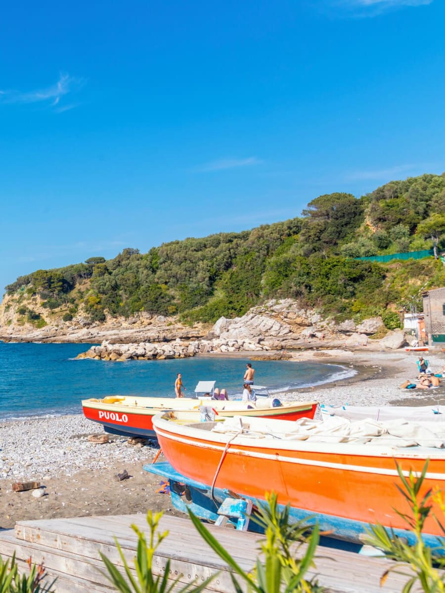 Vivid blue boats, pastel houses, and the aroma of frying fish—Marina della Lobra is a working harbor with a tiny sliver of sand and plenty of rocky ledges for sunbathing and swimming. The village is lively, with waterside trattorias and ice cream shops, and the water is calm and clear. Early mornings are best for a peaceful dip—the locals’ secret is to grab a coffee at Bar del Porto and watch the fishing boats return.