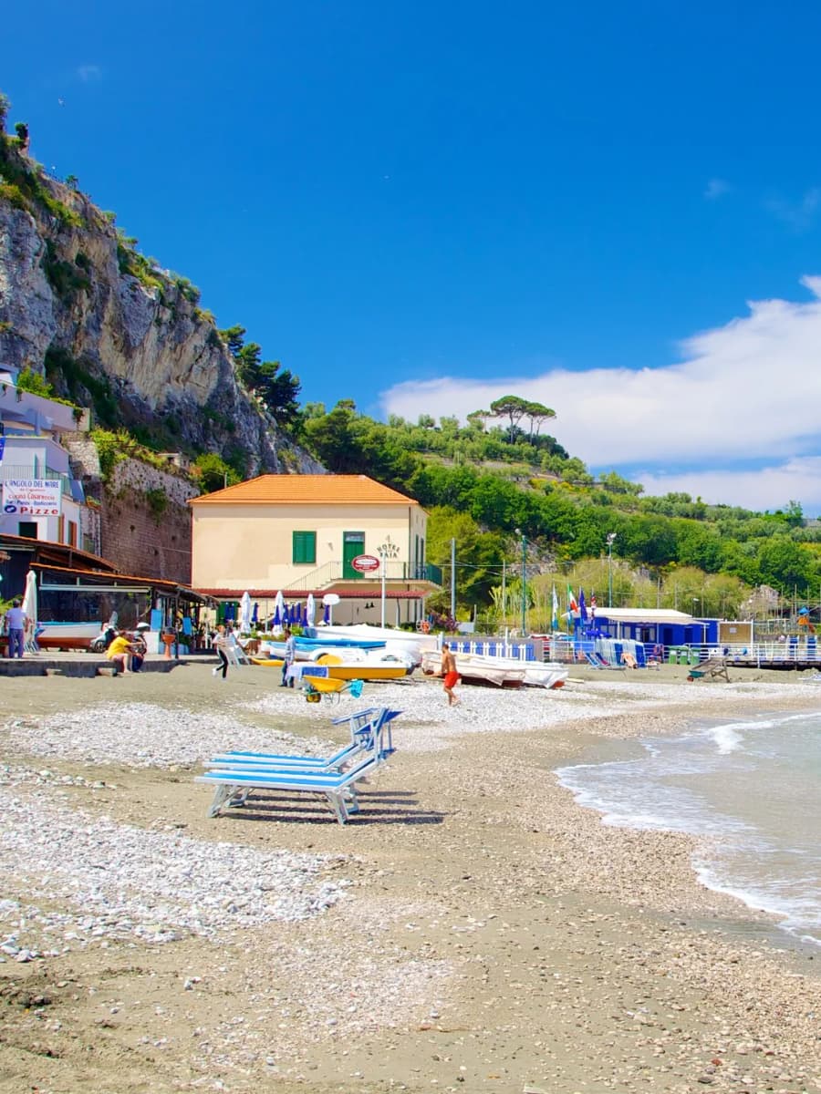 Baia di Ieranto Beach, Crapolla Cove Beach, and Cala di Mitigliano Beach are wild, quiet, and ideal for those seeking solitude.