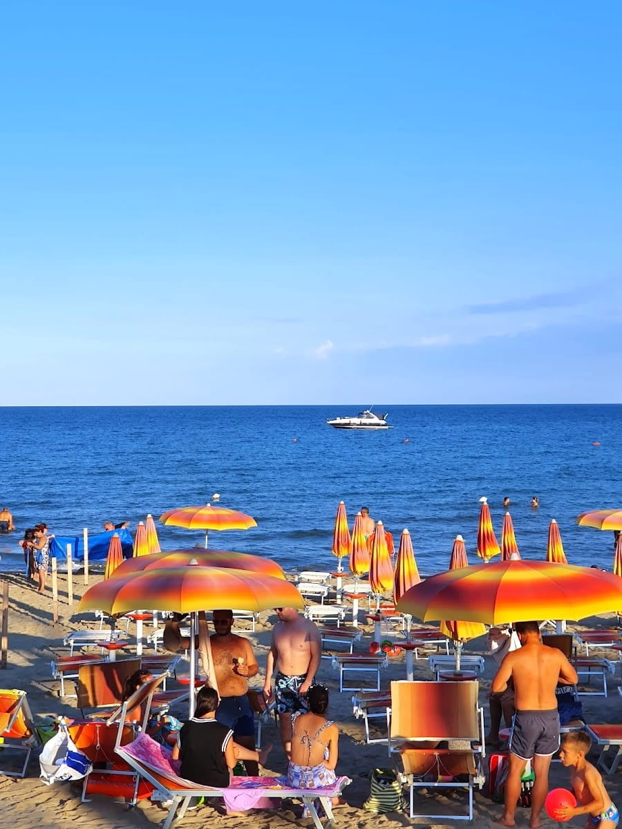 The scent of grilling seafood drifts over the sand as families gather at wooden tables under bright umbrellas for a gastronomic afternoon. I stayed late into the evening here, sharing bowls of spaghetti alle vongole as the stars came out, pairing food and wine in a casual setting. This short stretch (about 300 meters) is a mix of sand and small pebbles, with shallow, calm water and a lively but relaxed atmosphere in summer, making it a destination for visitors who love local restaurants.