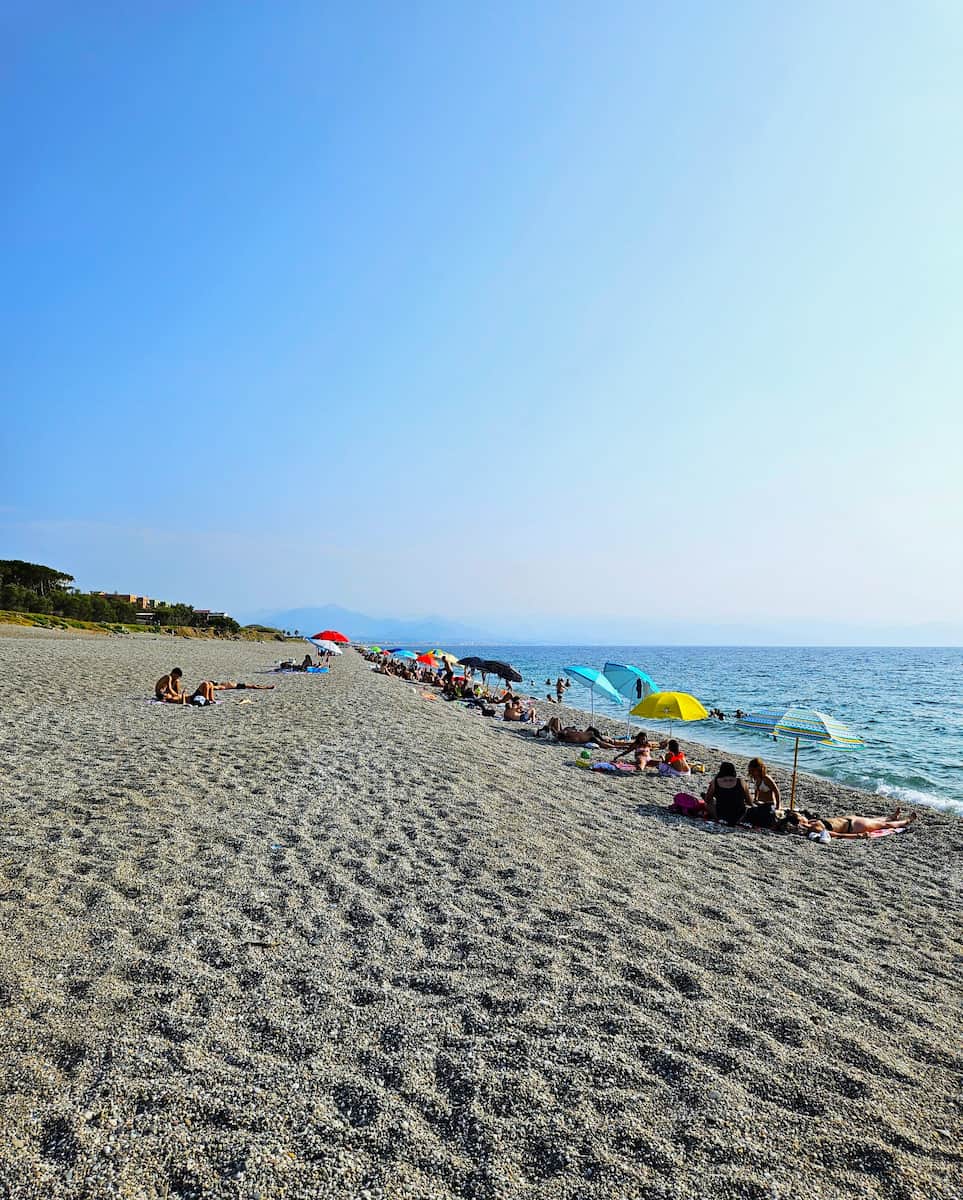 Baia del Tono’s smooth pebbles are cool on hot feet, and the turquoise water glows in Sicily’s summer sun with breathtaking views on clear mornings. I spotted old fishing boats bobbing in the tiny marina, a quiet contrast to the main sandier parts of town below Milazzo Castle. This 1.5 km pebble beach is best May to September, great for a peaceful swim or snorkel before an early evening aperitif.