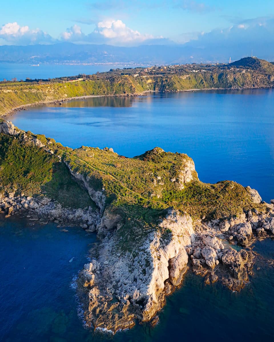 Capo di Milazzo is famous for Piscina di Venere (Venus’s Pool), a natural rock pool just round the coast—locals love it for private swimming, especially early in the morning on this dramatic peninsula. The Capo Milazzo lighthouse has killer views, and the castle ruins are a short drive or walk back toward town with another beautiful view at sunset. Parking is available at the cape; best visit by taxi or car, as the area is spacious and quiet yet remains a peaceful gateway for unhurried swims.