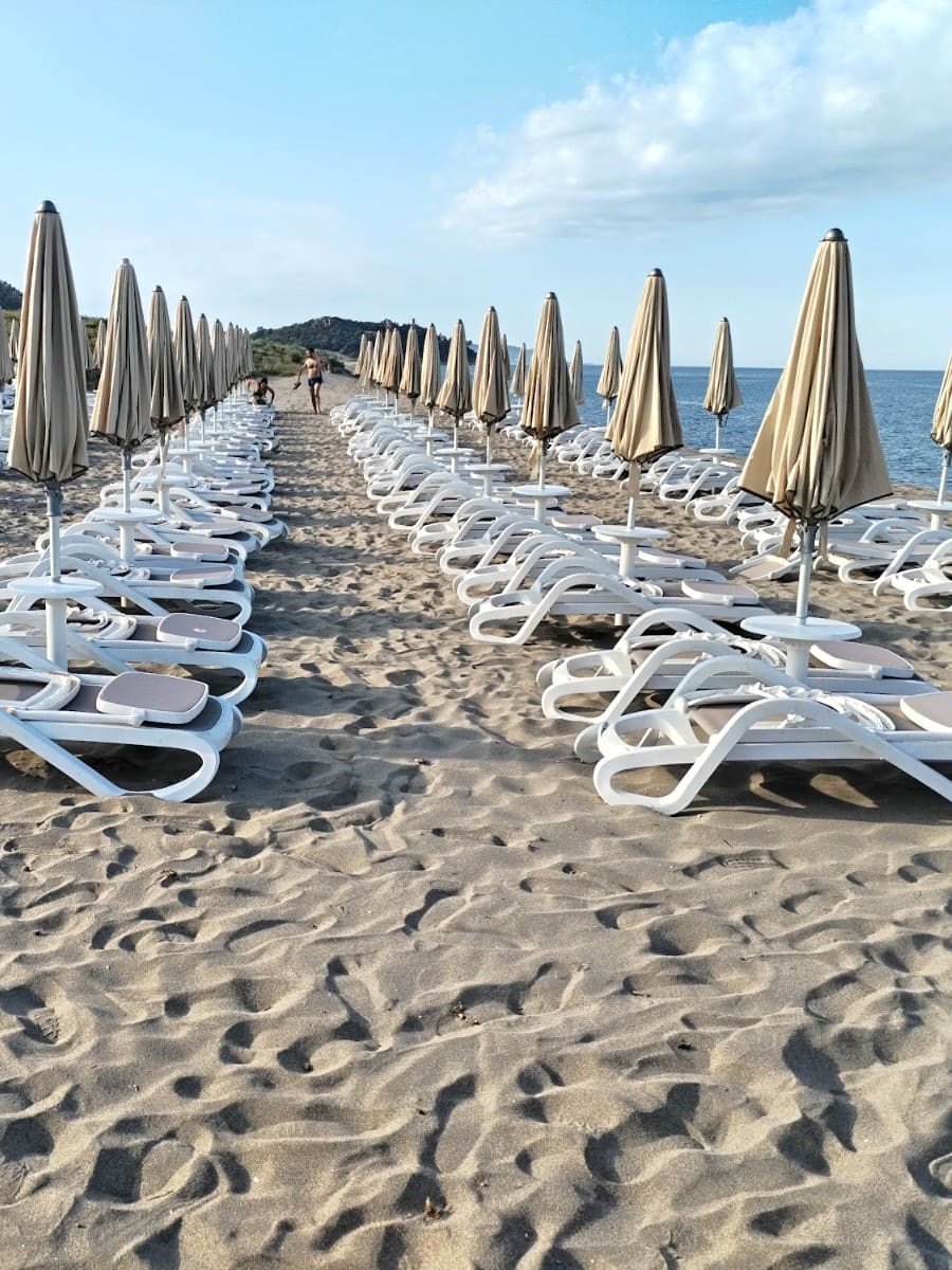 Colostrai’s fine, pale sand slopes gently into the sea, while the adjacent lagoon attracts flamingos and rare birds, and the shoreline sits between beaches and resorts that remain blissfully low-key. The contrast between the green lagoon and the deep blue sea is striking — a little slice of wilderness on the coast where fully-equipped dog beaches are rare and rules favor quieter stretches. I watched locals foraging for clams at low tide, a quiet morning ritual that continues even beside private beaches set back from the dunes. This beach is sandy, about 2 km long, and most peaceful in June and September.