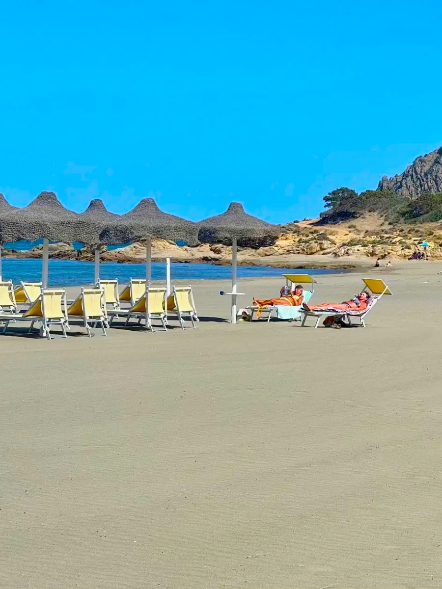 San Giovanni is a long, narrow strip of sand nestled between the Flumendosa River and the open sea, creating a unique, tranquil atmosphere that feels idyllic on a relaxed day at the beach. The water is calm, the sand warm, and the sound of distant church bells drifts over from Muravera town like a soft, orange glow at sunset over this rich wetland edge. I discovered a tiny beachside shack selling fresh citrus juice — a taste of the region’s famous harvest that adds a bright, orange note to the moment. Sandy, about 1 km long, and ideal from May to October, it’s one of those rich coastal pauses that turn a simple day at the beach into a ritual.