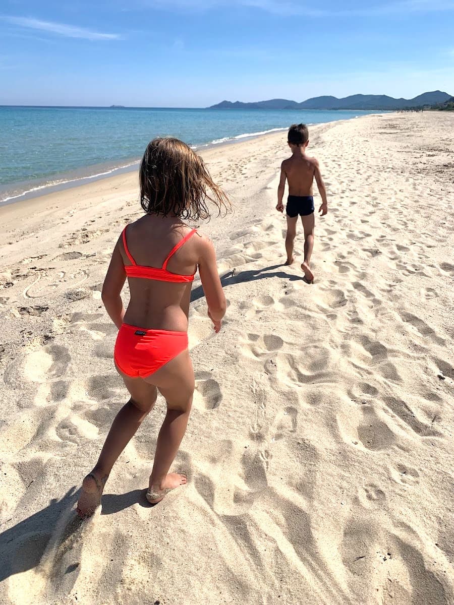 Piscina Rei Beach and Colostrai Beach offer shallow, calm waters, soft sand, and lifeguards in season — perfect for families with kids.