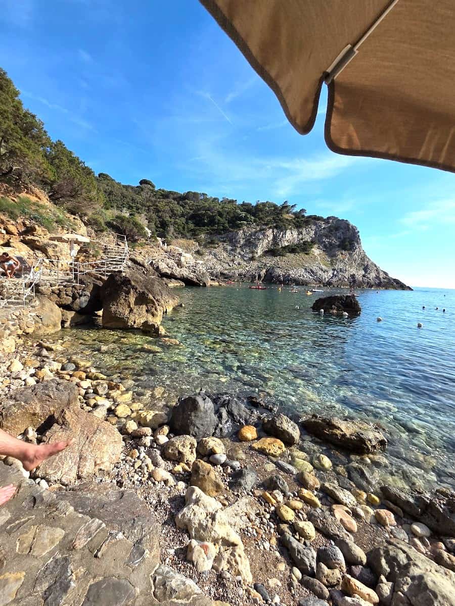 Cala del Pozzo is a tucked-away gem on Monte Argentario’s western edge — a tiny pebble beach surrounded by cliffs, accessible via a steep footpath from Porto Santo Stefano. The water here is crystal-clear, ideal for a refreshing swim after the hike down. I had this cove almost to myself one weekday morning, listening to the waves and the calls of seabirds overhead. The beach is about 50m long, with deep water close to shore — perfect for a quick, invigorating dip. Visit late May to early October for the warmest water and calmest conditions.
