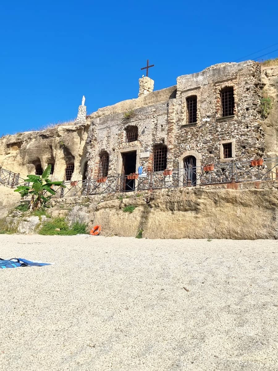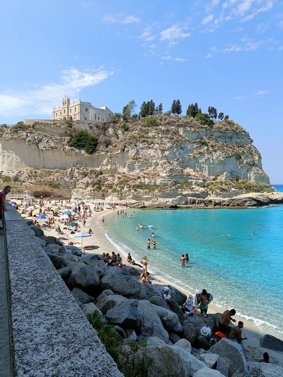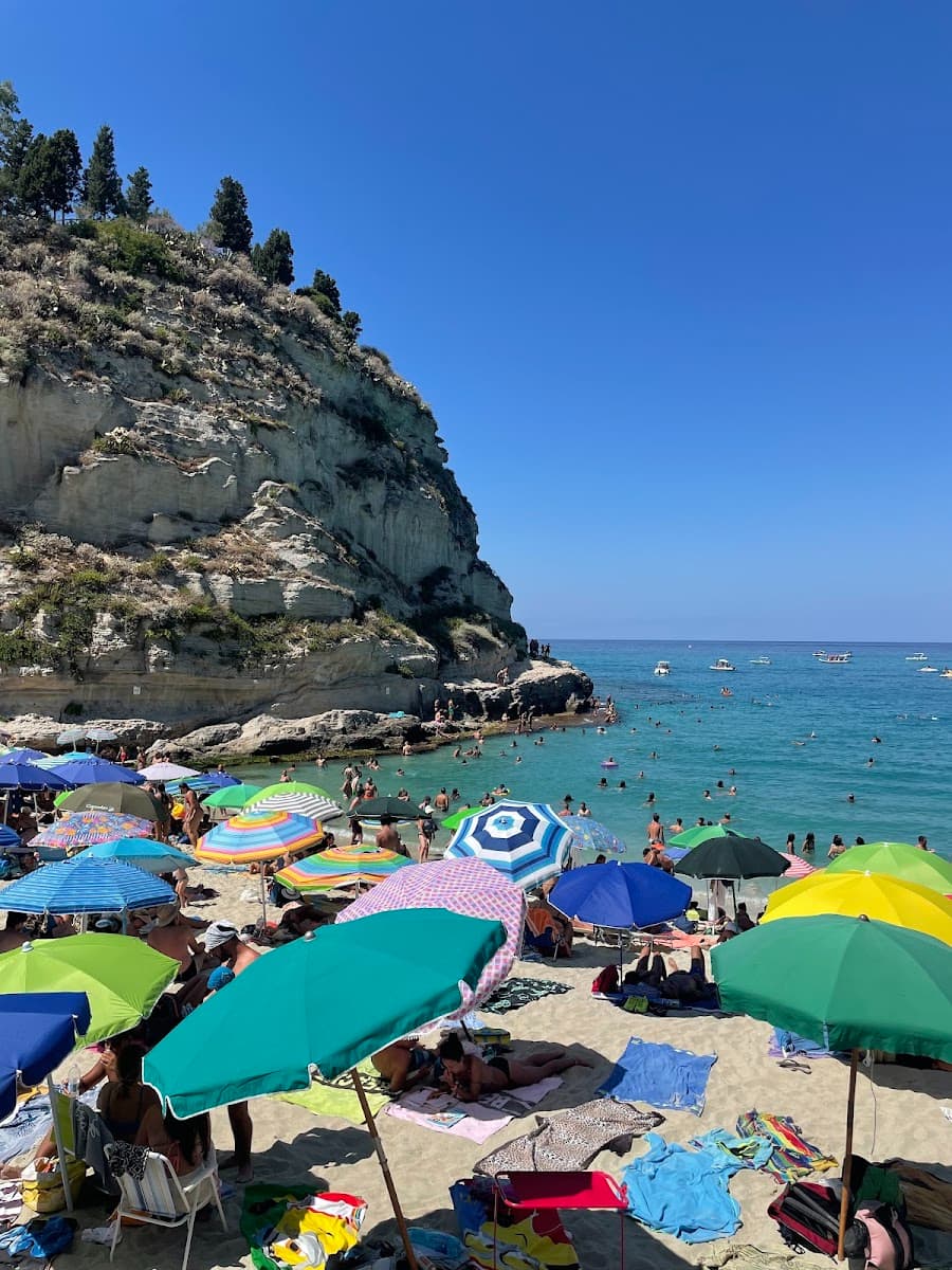 This small, free stretch of sand sits below the famous Chiesetta di Piedigrotta, a cave church carved into the cliffs—its moody interior and stone statues are a must-see attraction in this part of the town. The beach itself feels like a secret, shielded from crowds and traffic, with gentle waves and a mix of sand and small pebbles; the panorama of the Tyrrhenian Sea are especially dramatic here, making it one of Calabrian’s most stunning beaches. It’s about 200 meters long, quiet most days, and best visited in late spring or early autumn, when the conditions are pleasant and sunny but the crowds have yet to arrive.