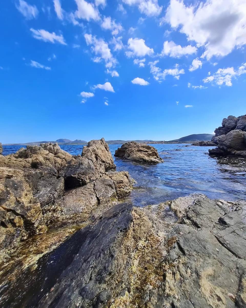 Punta Nuraghe is a stretch of coast with rocky outcrops, shallow pools, and panoramic views over the Golfo di Cugnana. I walked here from Ira Beach at low tide, spotting crabs in the tidal pools and seabirds overhead. It’s not a classic sandy beach, but the scenery is spectacular.