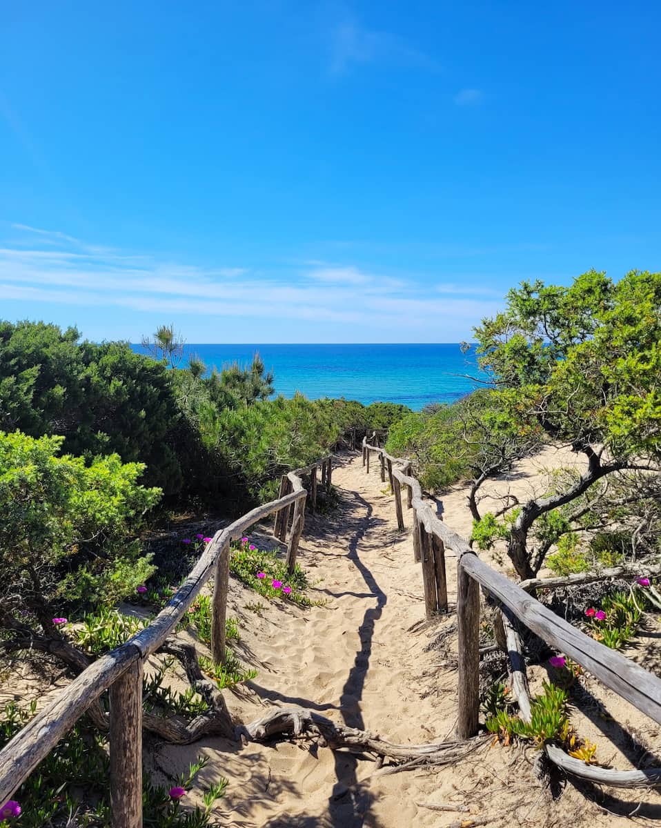 Tamerici is best reached on foot or by bike—follow the coastal path from Porto Torres; it’s about a 40-minute walk where Porto Torres also maintains signed waymarks along the route. Locals love the small dune at the far end for picnics and sunset views. There’s no formal parking; the nearest bus stop is Porto Torres Sud. Bring snacks and water—facilities are minimal.