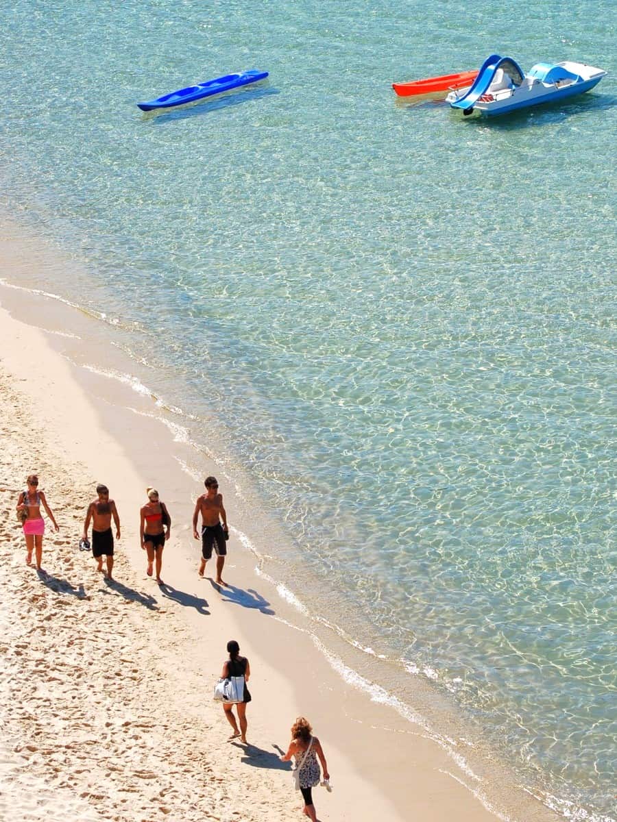 - Pro: Perfect combination of golden sand, shallow water, and comprehensive facilities including restaurants and equipment rentals.