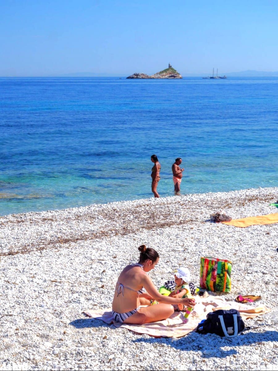 - Con: Pebbles can be uncomfortable for extended lounging, but beach shoes make walking and swimming comfortable.