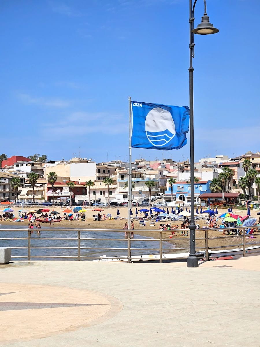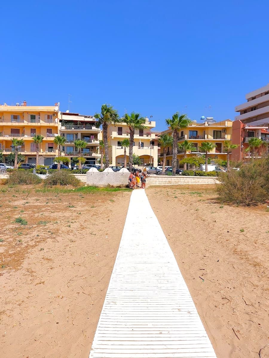 This is the most central access from Pozzallo’s town center to the main beach—a wide, sandy strip that runs parallel to the main promenade. The atmosphere is breezy, with locals and visitors mixing along the waterfront. Palm trees line the shore, and you’ll always find a spot to drop your towel. I loved watching the changing rhythms of the day here—early morning joggers, lunchtime strollers, and sunset couples.