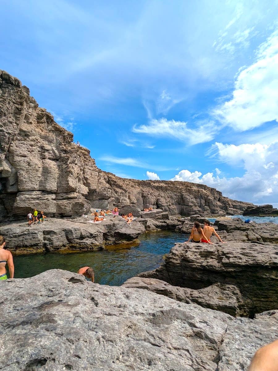 Also known as “Le Vasche,” this small, rocky cove features natural tidal pools and clear, shallow water. The scenery is wild and unspoiled, with seabirds diving overhead. I watched local families picnic on the flat rocks before slipping into the pools for a swim. Visit in spring or autumn for the best conditions and fewest visitors.