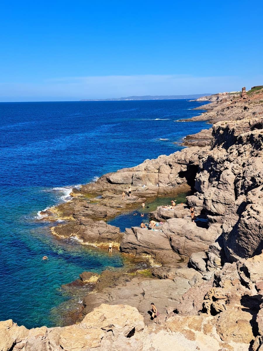 Portixeddu is a small, sandy cove mixed with smooth rocks and patches of sand and pebbles, known for its relaxed local atmosphere on the Mediterranean Sea. The shallow water is safe and clear, perfect for a refreshing dip and a family afternoon before you go to Calasetta for an evening stroll. I joined locals for an afternoon swim at Spiaggia delle Vasche—a natural pool formed by the rocks that many consider it’s the ideal place for a lazy float. Visit in summer for the liveliest scene or in spring for tranquility, and watch the small ferry to Carloforte crossing the channel on clear days.