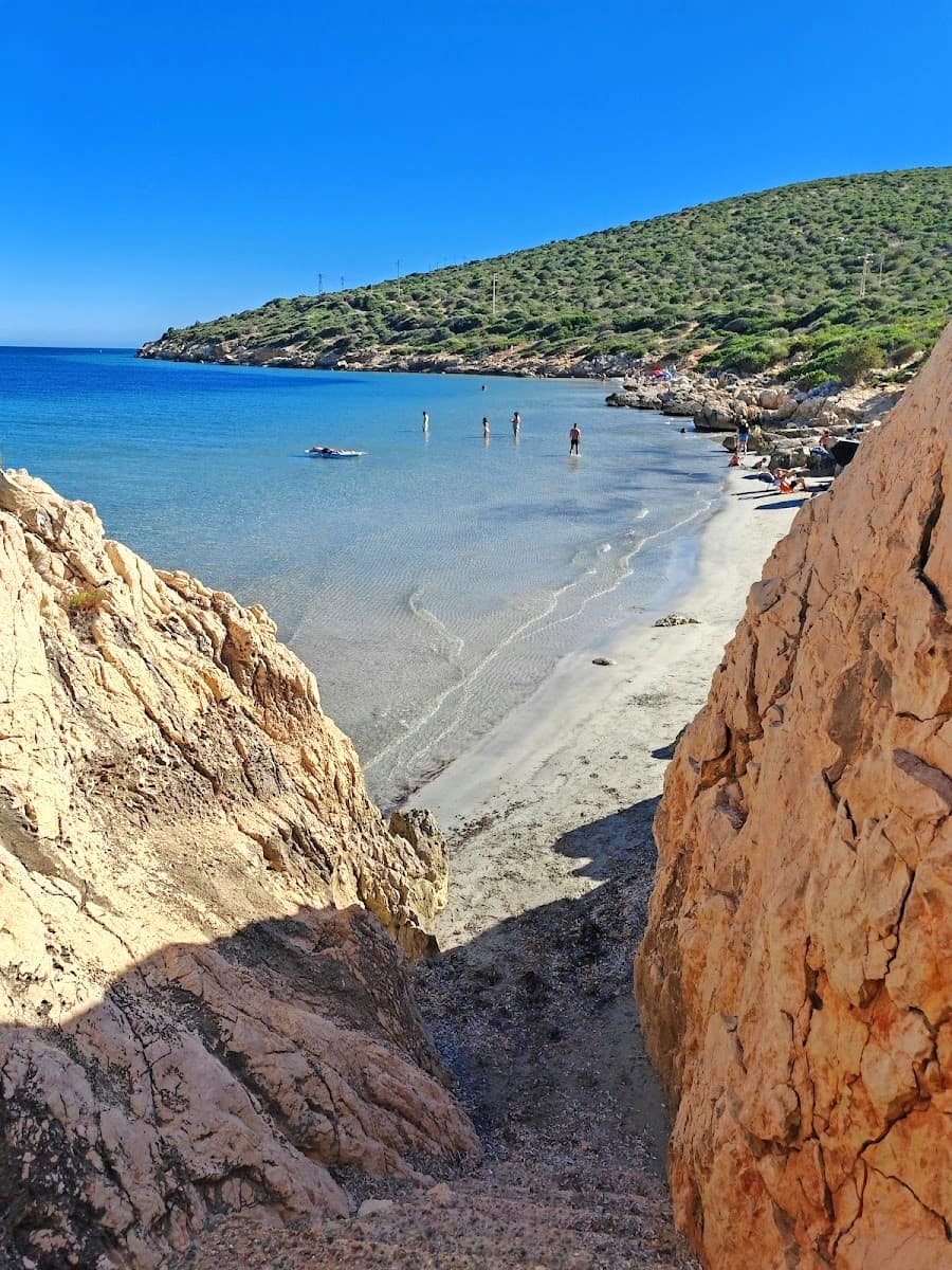 Park near the small harbor and walk five minutes to the beach, one of the classic places locals recommend when exploring Calasetta and Sant’Antioco. The rocky platforms at either end are popular with local fishers, and guided tours often frame this inlet as part of Sant’Antioco kayak routes. For a unique experience, join a guided kayak tour from Sant’Antioco town—operators often stop here for snorkeling before continuing beside the sea of Sant’Antioco. Visit in the morning for the calmest water and best light on the island of Sant’Antioco.
