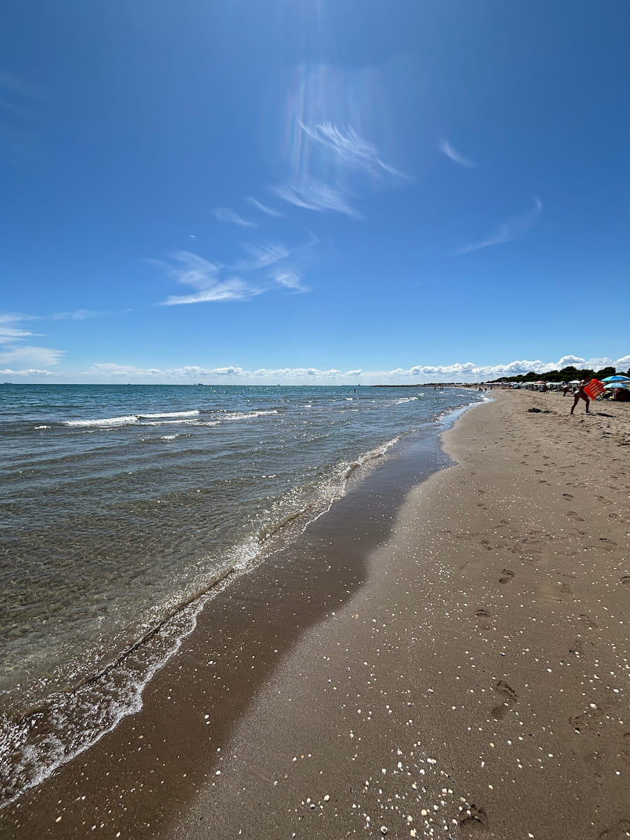 Boschetto feels more like a woodland glade than a seaside spot, with tall pines shading the pebbly shoreline and the sound of cicadas filling the air. I spent a lazy morning here, alternating swims with naps in the shade, watching birds flit between the branches. This pebble and gravel beach is about 200 meters long, with calm, shallow water ideal for families in July and August.
