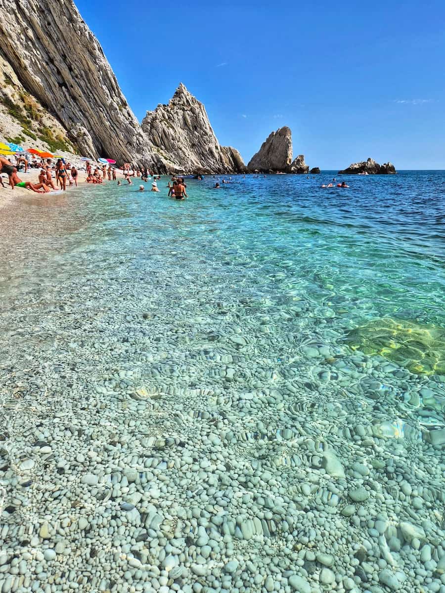 Picture this: two limestone pillars rising from the bluest Adriatic, reachable only by boat or a challenging hike — that’s Due Sorelle, a coastal icon. I joined a morning boat tour from Numana, and as we rounded the point, the sheer scale of the cliffs humbled everyone on deck. This pebble and rock beach is only about 100 meters, best for swimming and snorkeling in July and August.