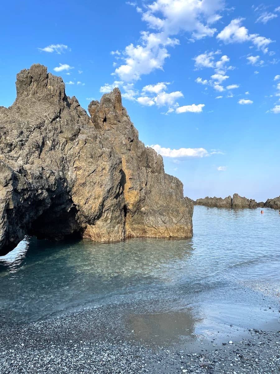Perhaps Calabria’s most famous small beach, Arcomagno is a tiny, crescent-shaped cove reached by a scenic cliffside path that delivers a perfect blend of history and raw coastal drama. I arrived early to beat the crowds, wading through the shallow, turquoise water under the natural stone arch—truly breathtaking for a beach within the cove’s natural amphitheatre. This pebble and sand beach (about 30 meters) is best visited May to October, with a 30-minute limit due to its size, and while it’s no huge beach, the intimacy is part of the appeal.