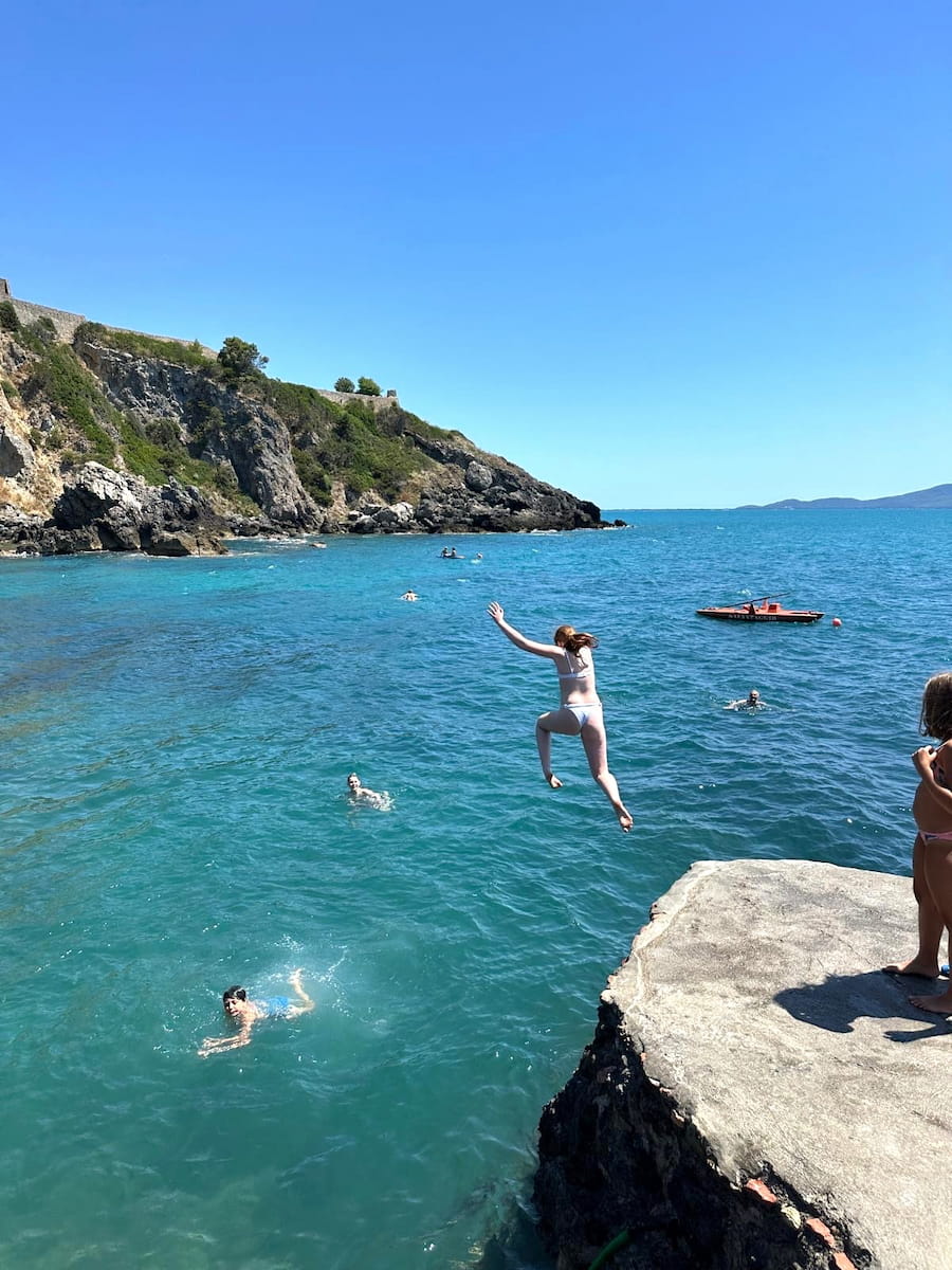 A striking cove of smooth white rocks and azure water, Bagno delle Donne feels almost enchanted, especially in the early summer when wildflowers bloom along the cliffs in the province of Grosseto with truly stunning views that capture the coastline’s splendor. I scrambled over the rocks and found a perfect perch to watch locals dive and explore the clear seabed below, a scene that recalls the site’s 13th century heritage without disturbing its quiet charm.