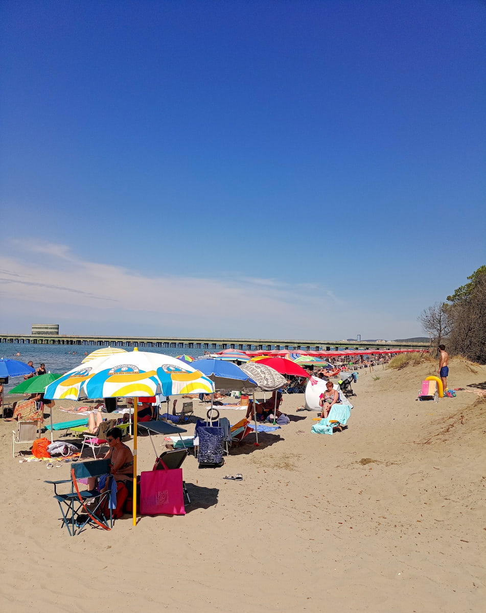La Fattoria Beach and Spiaggia dei Pini Beach are top choices, offering shallow, gentle water, soft sand, lifeguards in season, and easy access, while the picnic areas provide shade and space for families to relax.