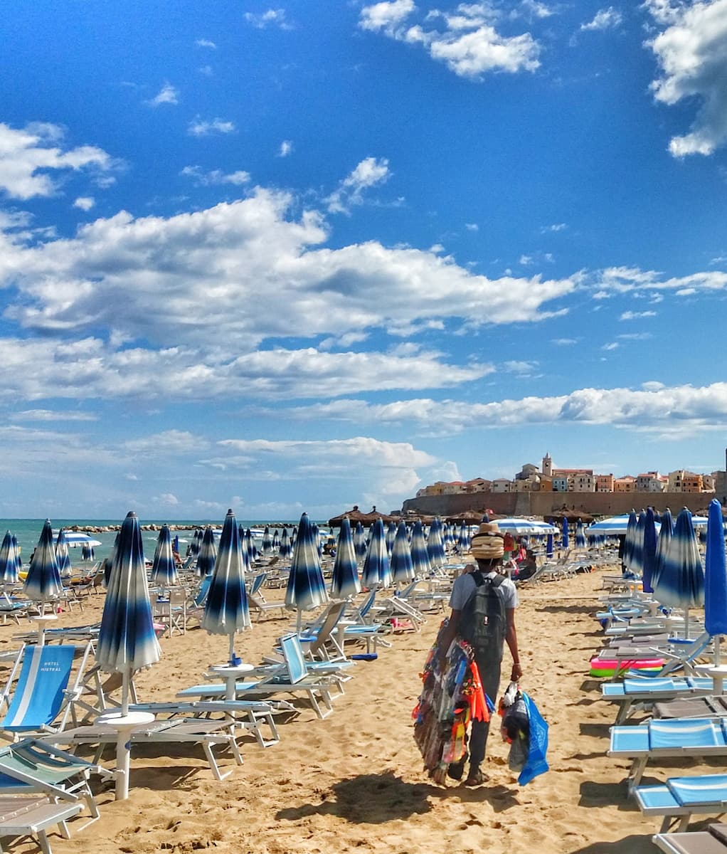 This lively strip combines sandy play with sporty ambition—I watched kite surfers dash across dazzling waves as beach volleyball fans cheered nearby. The beach area here is 400 meters, backed by pine trees and the iconic Torre Tumbo watchtower, with warm, clear water from June to September—making the beaches around Termoli perfect for those who love to get active right on the sand.