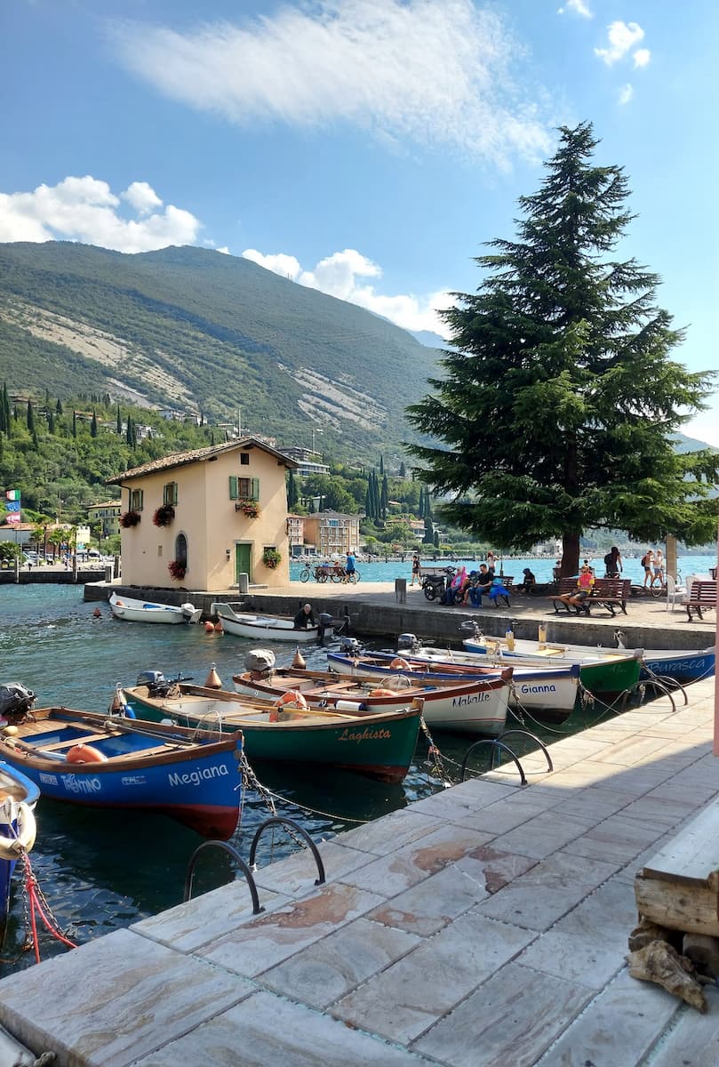 The crunch of gravel underfoot mixes with the hum of cicadas as you walk the path along the lake. I paused at a shaded bench to watch boats glide by with lake panoramas toward the old town. Sabbioni beach is one of the largest and best-equipped beaches near Torbole, with sunbeds, umbrellas, and plenty of space for picnics and games in this part of the lake.