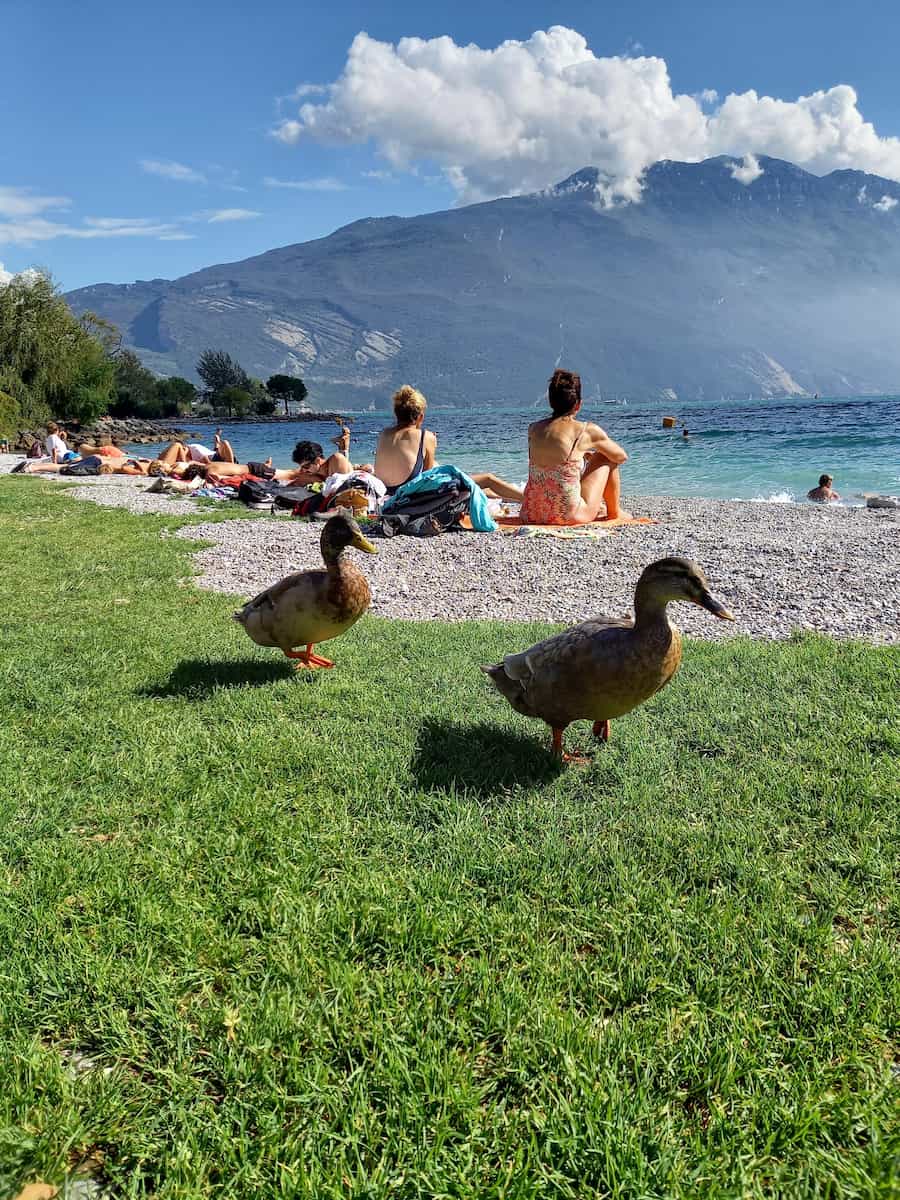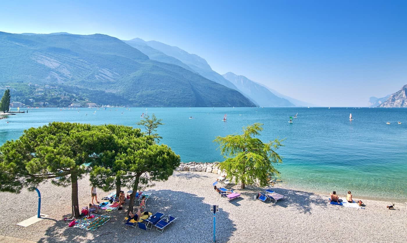 Pini beach and Sabbioni beach offer playgrounds, shallow waters, and green spaces ideal for families with children around Lake Garda.