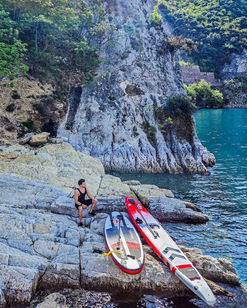 Lungolago beach, Spiaggia Lido Blu beach, and Conca d’Oro beach are top choices for sports such as windsurfing, paddleboarding, and kitesurfing for beginners and experienced riders.