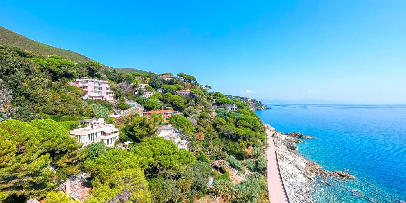 - Pro: Undisturbed atmosphere, easy stroll to Varazze’s old town and markets.