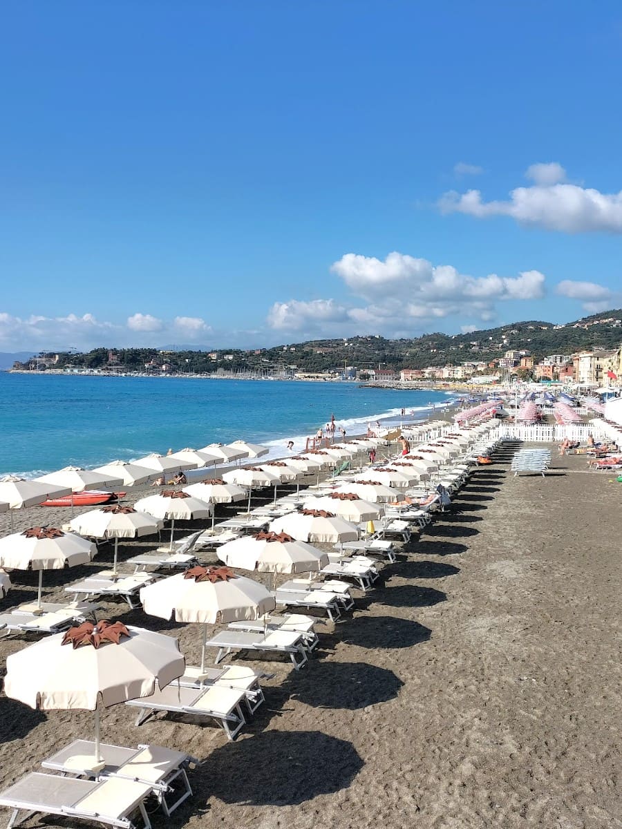 Bright golden sand and sunlit umbrellas make this one of Varazze’s most iconic sandy beaches along the Italian Riviera. The feeling of fine sand between your toes pairs with crystal-clear waters ideal for swimming and paddleboarding. I lingered near the lively Lungomare Vespucci, enjoyed a cold drink at the shaded kiosk, and joined locals for volleyball in the late afternoon. This gently curving bay is 900 meters long, with peak season in July and August when water temperatures reach a balmy 24°C.
