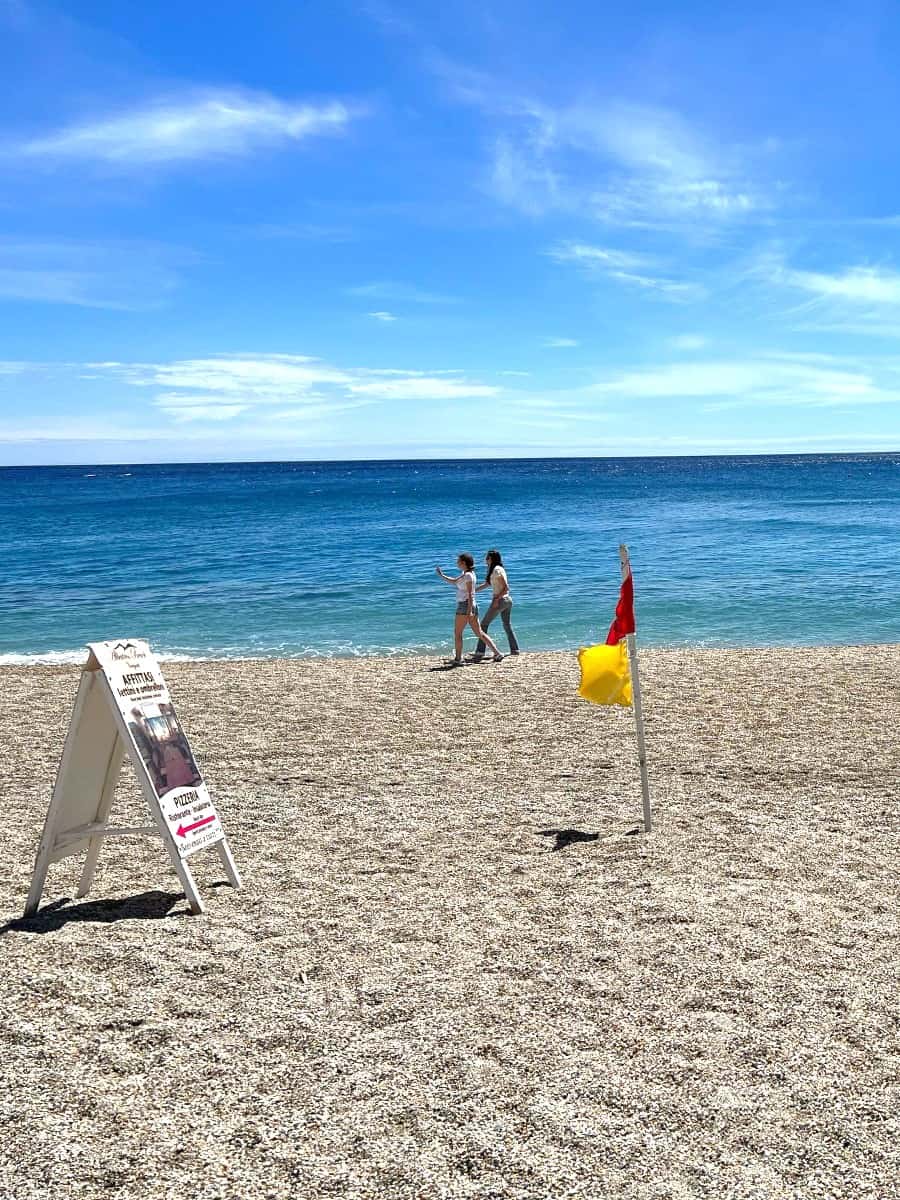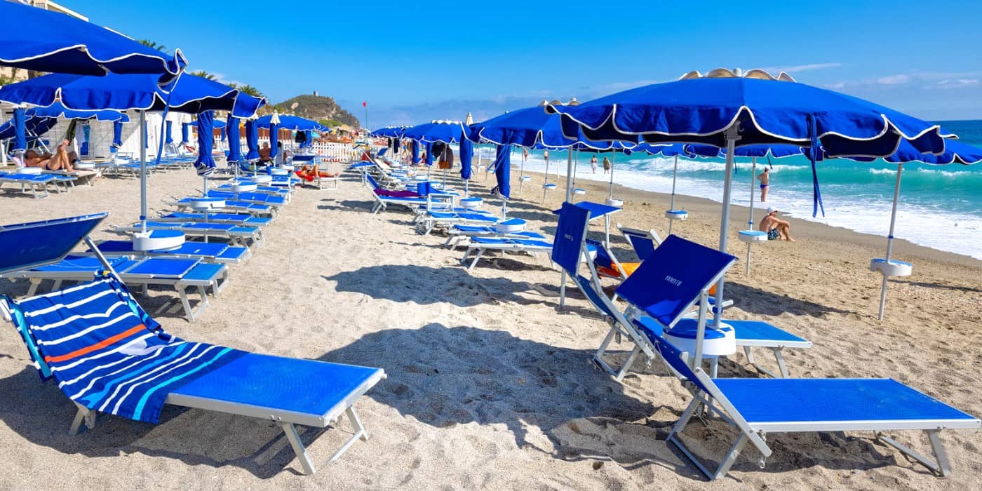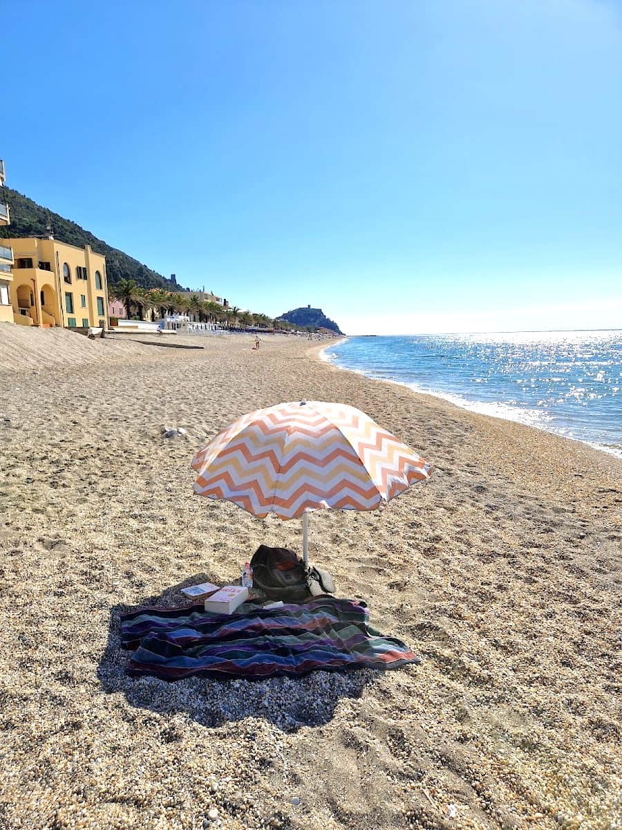 Meals at casual seaside trattorias cost around €15–25 per person, while renting a sunbed and umbrella typically runs €25–35 per day in peak season, but there are also plenty of free beaches and sand stretches if you’re happy to bring your own towel.