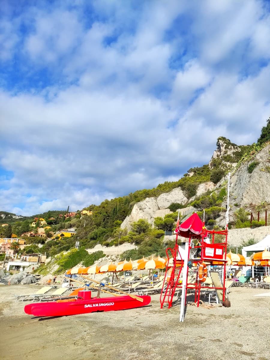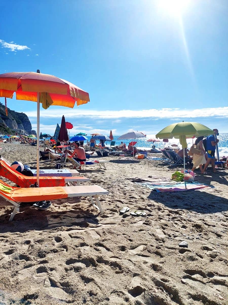 Drop your towel near the central lifeguard station for convenience and easy access to town and those open views of the sea. Locals love the daily fish market on Via Aurelia, just a short stroll away, for picnic supplies that suit the relaxed atmosphere of this bay. The nearest bus stop is Varigotti, steps from the sand, making it easy to visit the ancient Church of San Lorenzo before or after a swim.
