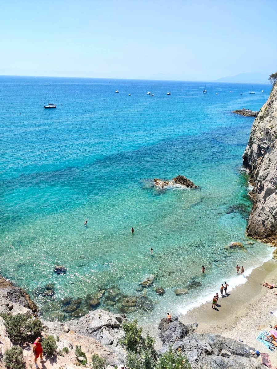 Spiaggia del Tunnel is a tiny, hidden beach just west of Malpasso, accessible only by descending a rocky path or swimming through a small tunnel in the cliffs. The first time I found it, I stumbled on a local artist sketching the sea—this spot is about discovery and solitude. The beach is about 30 meters, with sand and small pebbles, and is calmest in early summer and late August.
