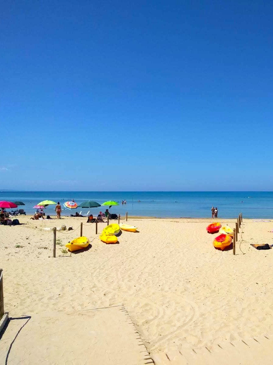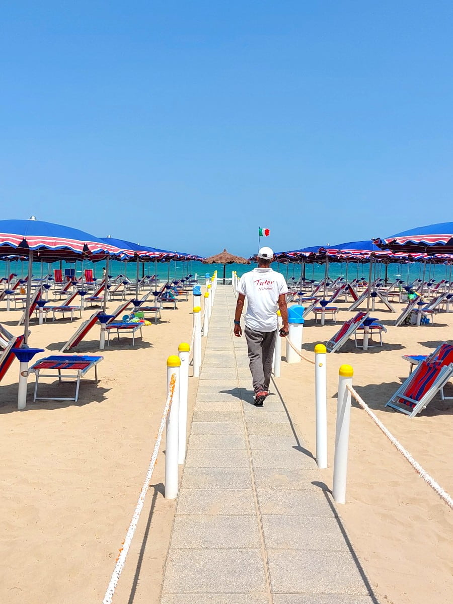 Lido Fernando Beach is a calm, sandy spot with a relaxed lido vibe and shallow, clear water, ideal for a lazy day at the beach. I liked sitting under the umbrellas here, sipping a spritz and watching boats bob in the bay, enjoying the best of a leisurely beach vacation in Italy, away from the hustle.