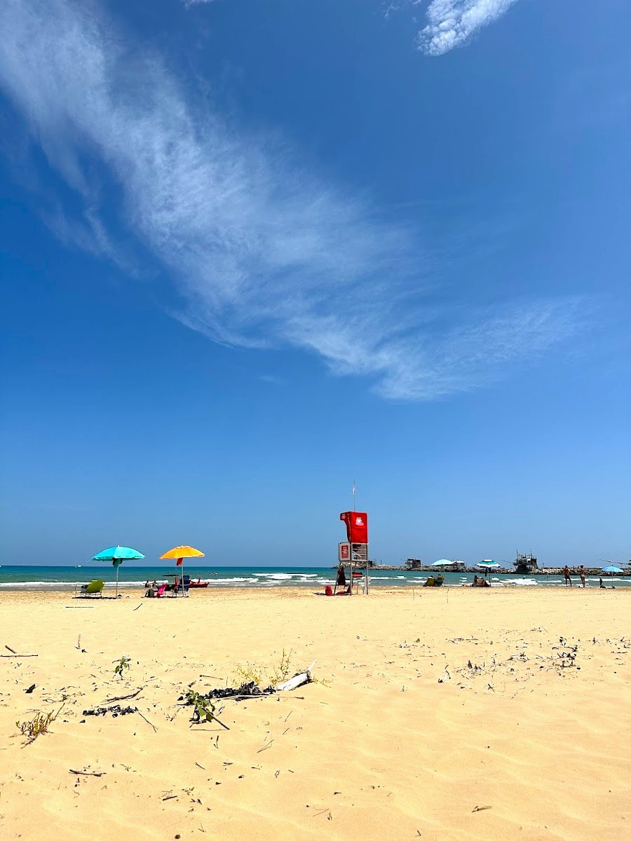 Il Delfino Beach is a favorite with locals for its laid-back vibe and friendly bar — it’s where you get a real sense of what life in Vasto in Abruzzo is like. The sand is soft, the water clear, and the horizon open, making it a lively beach for social butterflies. I remember a local nonna playing cards with her friends, the sea breeze ruffling her sunhat, as the sun set over the Adriatic — a true taste of a beach vacation in Italy.