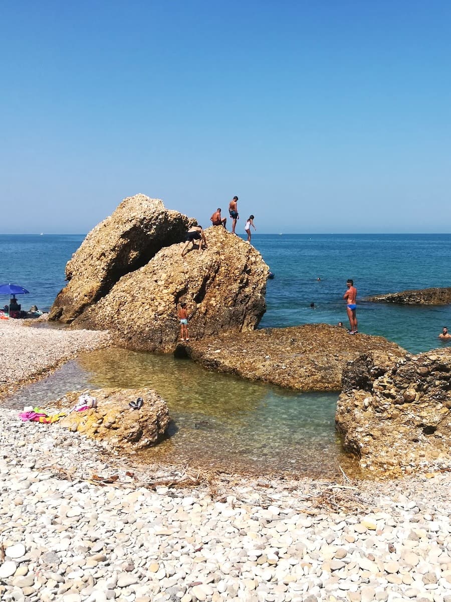 This tranquil pebble beach is framed by cliffs and natural pools, offering a beautiful pebble beach experience for those who appreciate the quieter side of the Abruzzo coast. The water sparkles in shades of blue and green, and you’ll often spot locals reading or napping under colorful umbrellas. I found a quiet nook here, listening to the waves tumble smooth stones — the perfect place for a relaxing on the beach afternoon, far from the crowds.